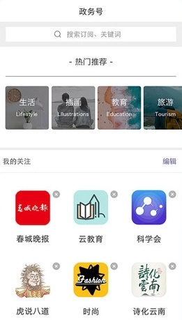 5、进入政务号页面后,可查看热门推荐内容,同时对自己关注的媒体号进行管理。
