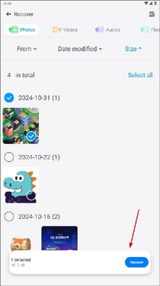 2. 随后选择需要恢复的图片即可。