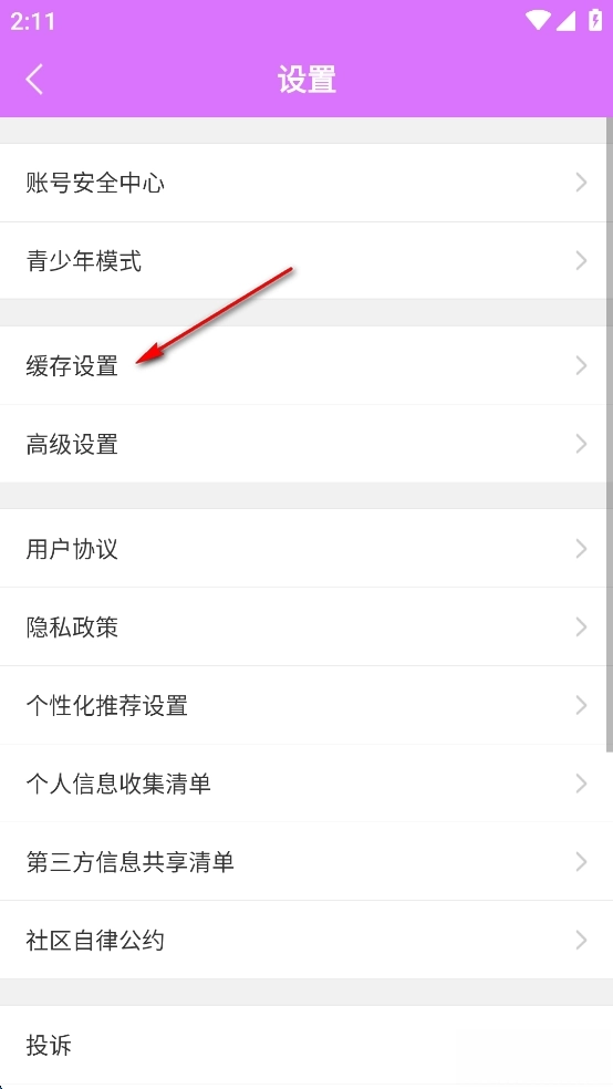 点击【缓存设置】