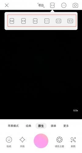 1、打开美颜相机,点击上方尺寸图标。