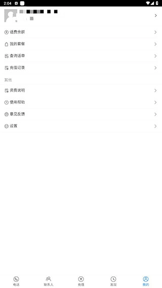 6、发现:点击屏幕下方的发现图标,即可进入发现界面,该界面提供充值、拨打、帮助、余额四项功能供用户使用。