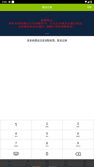 3、电话:点击屏幕底部的电话图标即可进入电话界面,页面会呈现最近的通话记录;若需手动拨号,可点击右侧的绿色图标调出键盘进行操作。
