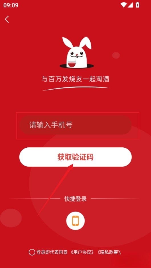 1、打开软件后,输入手机号码,获取验证码完成登录,系统将自动完成注册流程