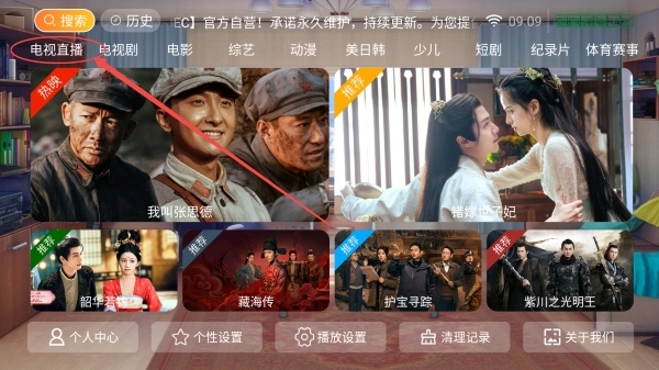 点击电视直播。