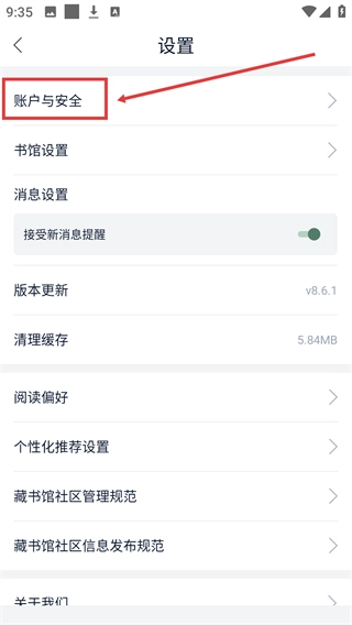 3、进入【设置】页面后,找到【账户与安全】选项并点击,可进入账户安全相关的设置界面。