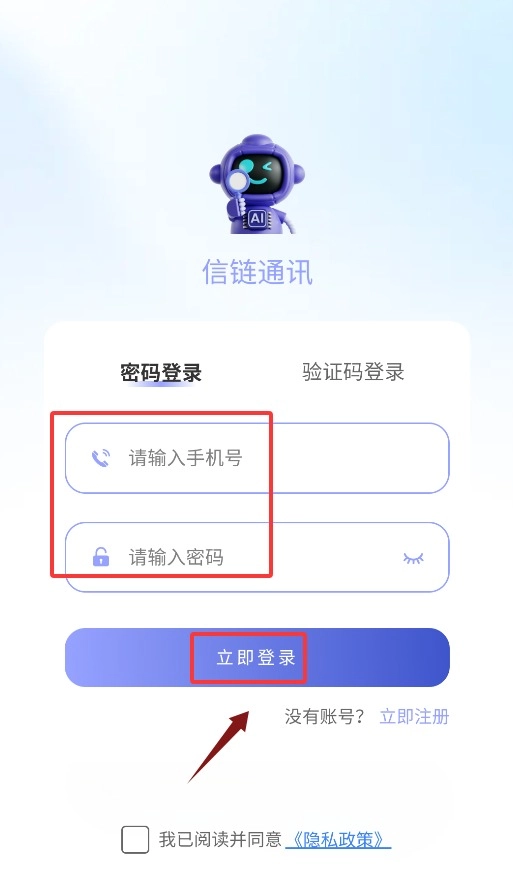 4、返回登录页输入手机号与密码,点击立即登录即可完成。