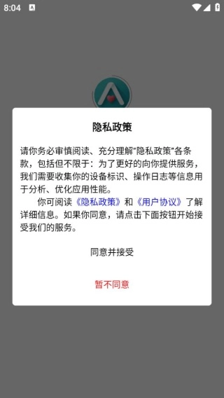 1、安装软件后打开,弹出隐私政策,点击同意直接进入。