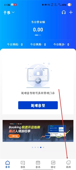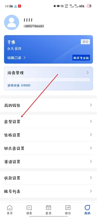 2、进入个人中心页面后,找到“房型设置”选项,点击该选项即可进入房型房间设置界面。