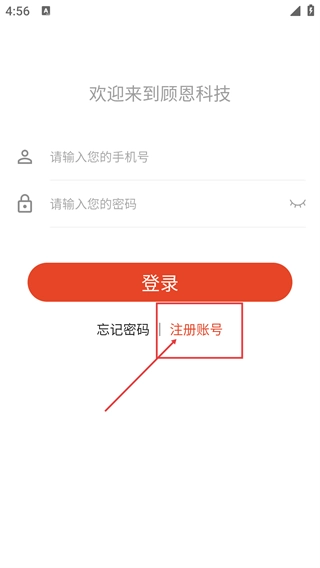 2、进入页面后,可填写【请输入您的手机号】-【请输入您的密码】后点击【登录】,若无账号,需选择【注册账号】进入注册流程。