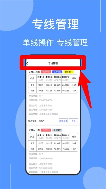 4、专线管理页面中可查看不同专线的价格、时效等信息,便于企业按需选择、统一管理路线。