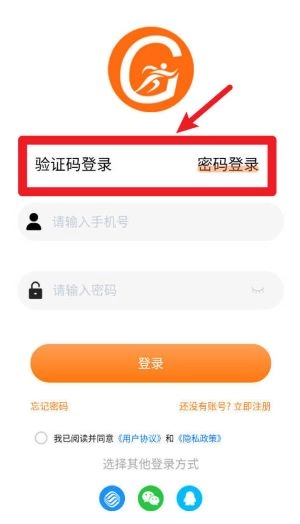 1、打开之后,进入登录界面,可选择验证码或密码方式完成登录。