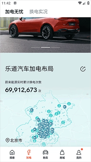 4、加电无忧功能让用户全面了解补能体系,观看换电视频,了解换电优势