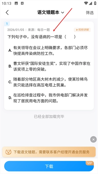 2、点击对应学科分类,进入该学科的错题列表页面。