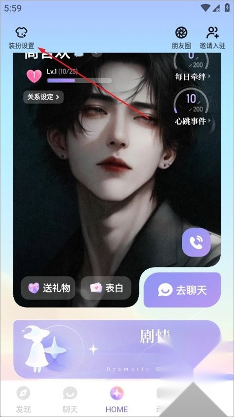 1、进入筑梦岛首页,在【发现】中找角色聊天,或创建自己的角色。