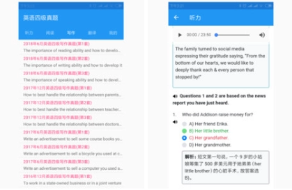 四六级真题是一款面向大学生群体打造的英语学习与备考工具,核心目标是助力用户更高效地备战英语四六级考试。平台整合了多届四六级考试的原题资源,全面覆盖听力、阅读、写作及翻译等所有考试模块,凭借海量的练习题与备考资料,为用户构建起一站式的备考支持体系。使用者既能在此获取历年真题开展模拟训练,还可享受到量身定制的学习规划以及智能的测评反馈服务,进而精准识别自身学习短板,切实提高英语综合能力。