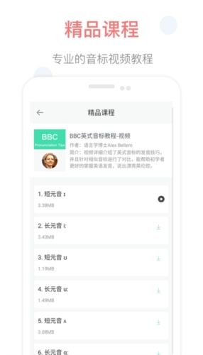 2, 外教示范:通过展示48个国际英语音标的发音口型,让学习者借助模仿与练习,掌握标准且地道的发音。