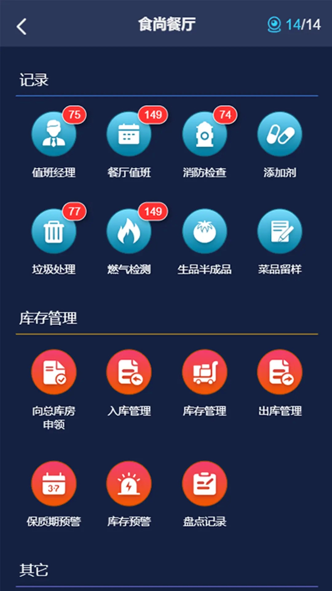 日常工作人员借助该平台,能够便捷地完成日常晨午晚检、消杀、库管、加工、留样、垃圾处理等各类台账记录的留存工作。一旦发现问题,可及时进行上报,每日的操作记录都清晰明了且可追溯。此外,线上库管模块能够实现从库存盘点、采购下单、物资入库到出库的全流程电子化管理,助力合理规划菜品采购数量,减少多余菜品的损耗,从而避免浪费现象的发生。