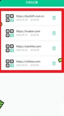 2、进入扫码记录页面后,能够查看以往扫描过的网址以及对应的时间。