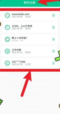 4、在制作记录页面,能够查看历史生成的二维码内容以及对应的时间记录,还支持快速查找和一键删除的管理功能。