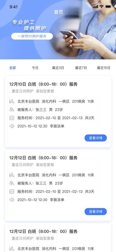 这是一款能让全家放心的专业护工服务软件,平台每天都会更新大量订单,护工接单更加便捷。护工们可以随时查看自己的订单收益情况,并且在平台完成职业技能鉴定后,就能更顺利地承接订单了。