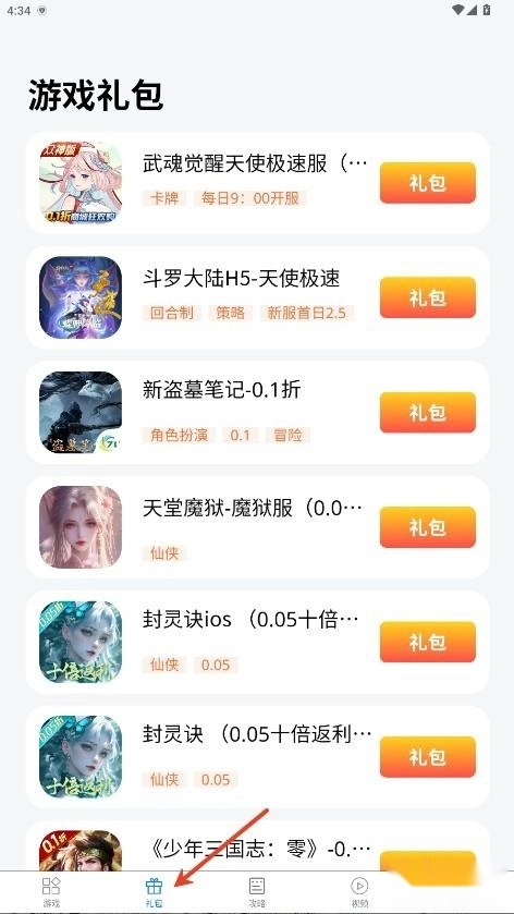 3、通过游戏类型进行浏览(像仙侠、卡牌、策略、BT服这类分类),能够快速筛选出符合自己喜好的游戏。