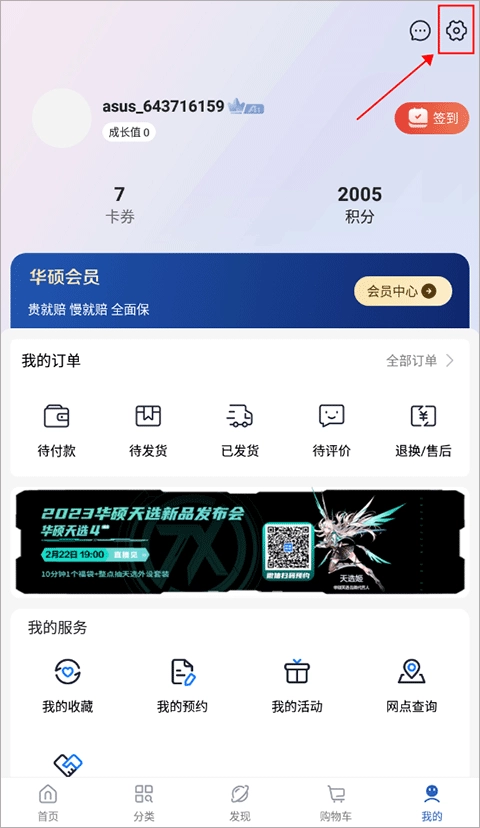 1、在华硕商城个人中心页面点击“设置”