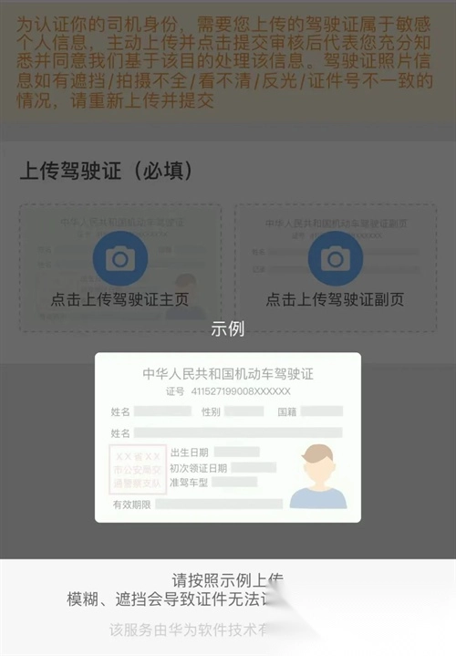 3.上传本人驾驶证信息,拍摄时请确保证件四角完整在画面内,模糊或有反光的照片会致使审核不通过。