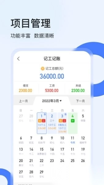 集成记工、记账、考勤打卡、水印拍照、施工日志与人员管理等多项功能,覆盖人、事、财三大管理维度,助力建筑班组达成高效运营目标。