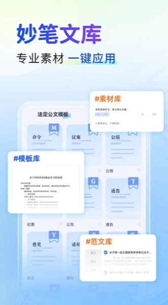 素材文库资源:整合了海量的范文模板、写作素材与规范文档,可覆盖多达94种写作场景。