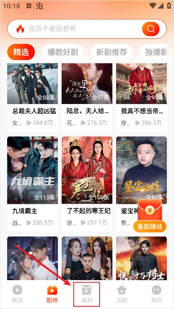 1、打开红豆短剧后点击下方导航栏的【福利】。