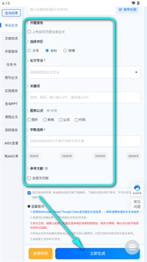 3、举个例子,要是您选用毕业论文功能,仅需输入相关信息,就能查看样例或者直接生成论文。样例的左边配有目录,方便您迅速预览效果。