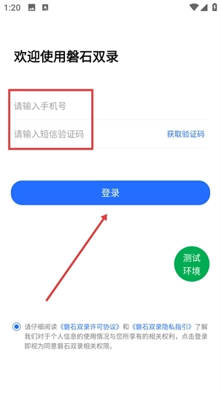 在软件登录界面,输入手机号后获取并填写验证码,完成上述操作后点击登录按钮即可完成登录。