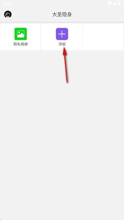 1、在手机上打开大圣隐身,并点击“添加”图标。