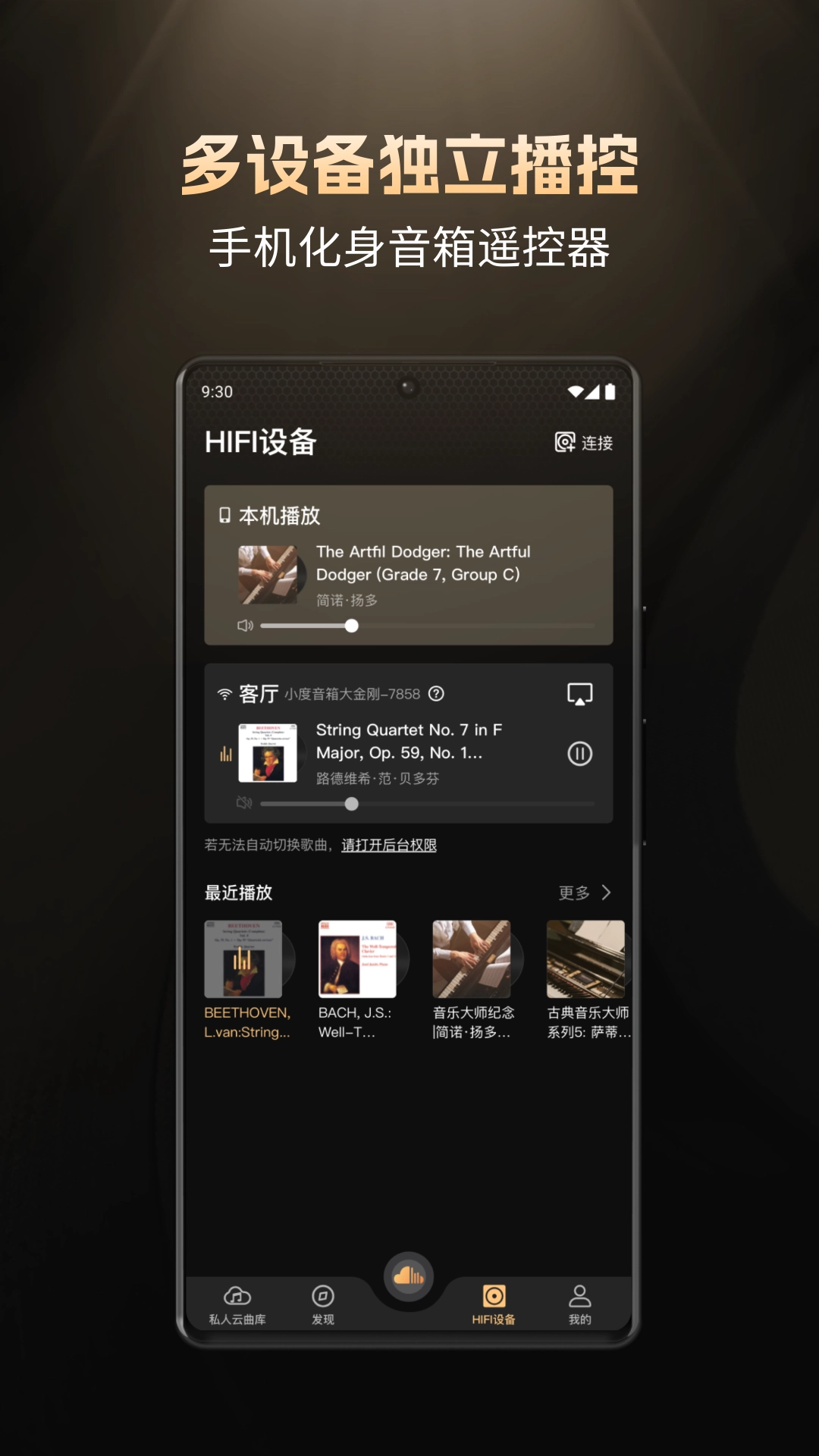 4、DLNA连接播放时,无损音质无法通过音箱设备播放?其实只需通过DLNA连接音箱设备,就能享受极速稳定的歌曲播放,并且还有多设备播放功能可供选择。