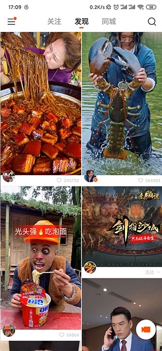 5、同城板块展示的,都是用户当前所在城市里其他用户发布的视频内容。