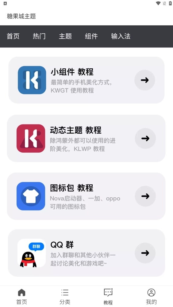 提供了丰富多样的主题资源,包括热门推荐、动态主题、小组件等。