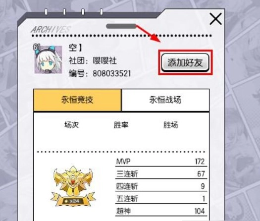 可以先查看玩家信息,然后点击添加好友按钮。