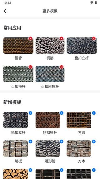 要是需要清点钢管、钢筋这类材料,点击上方对应的建材选项就行。