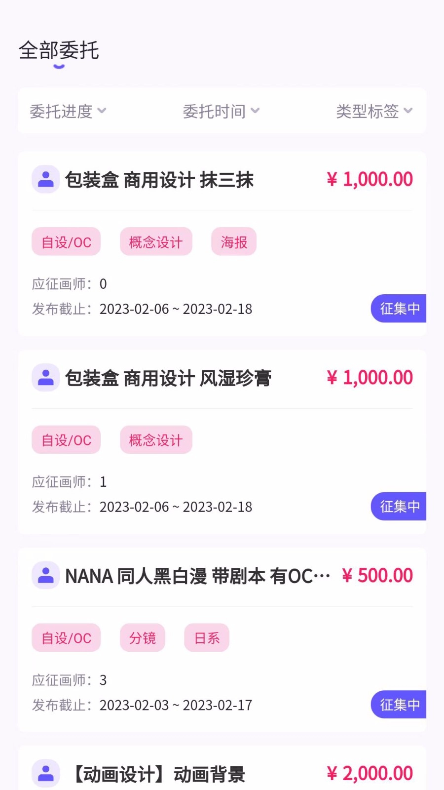 这里的约稿没有任何限制,画师们都能自由查看各类委托单。