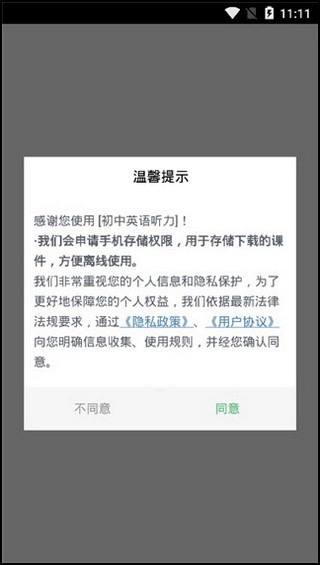 安装并打开初中英语听力应用时,首先需要同意相关条款才能使用。请放心,这是很正常的操作流程,不会涉及任何费用,也不存在诈骗风险。