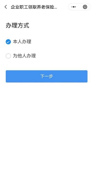 请从“本人办理”和“为他人办理”两种办理方式中选择其一,然后点击【下一步】按钮。