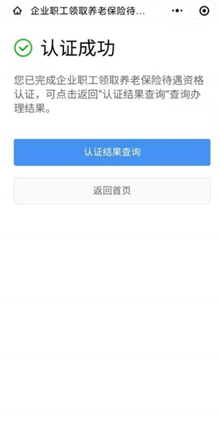 人脸识别通过后,页面会显示“认证成功”。您可以点击【认证结果查询】按钮查看具体的认证信息,也可以点击【返回首页】按钮回到粤省事首页。