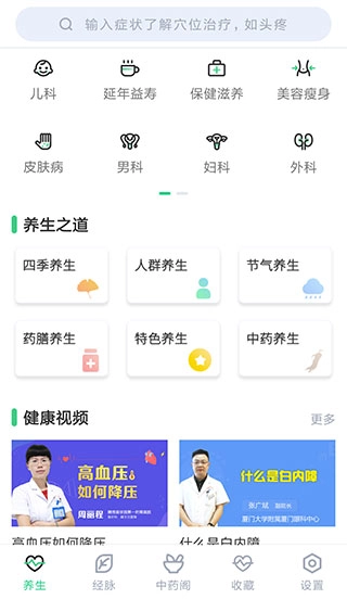打开软件后,在养生首页能够搜索想要查询的养生知识或疾病相关内容,这里会为您提供养生之道。