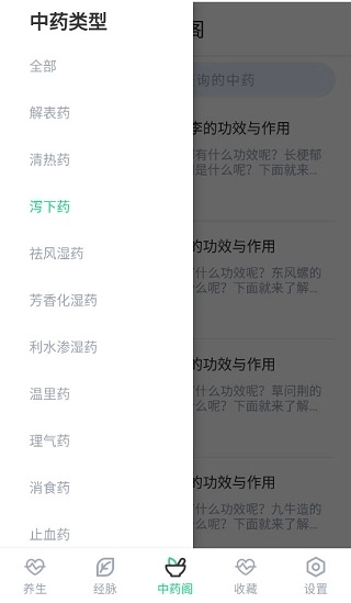 中药阁页面,有解表药、清热药等各种中药分类。