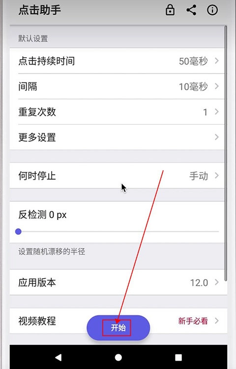 用户若想开启点击辅助功能,需先授予应用相应权限,点击下方的“开始”按钮就能快速跳转至权限设置界面。