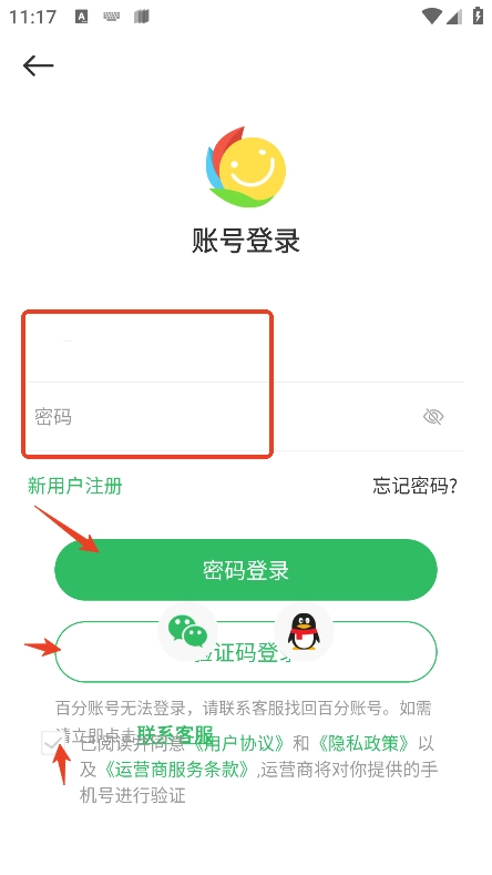 如果有账号,直接输入账号和密码登录,没有的话,可以点验证码登录。