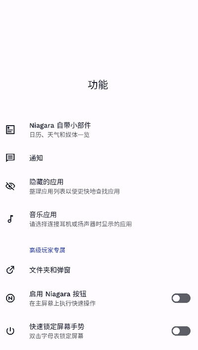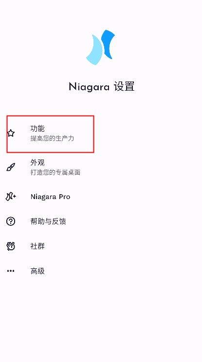 任意挑选一个应用图标,长按该图标后会弹出下图所示的信息,接着点击Niagara设置即可。