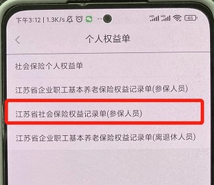 3.挑选“江苏省社会保险权益记录单(参保人员)”这一选项。
