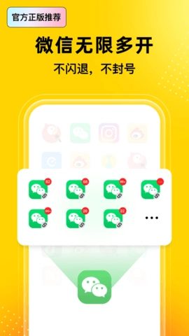 它能为微信、QQ、陌陌等各类应用提供稳定的分身服务,让多个账号同时运行无忧。猴子多开分身凭借扎实的技术功底,确保用户在使用过程中体验流畅、操作不卡顿,消息实时同步无延迟,且对不同应用的兼容性出色,因此深受日常社交、游戏娱乐用户的青睐,成为他们管理多账号的首选工具。除了核心的多开功能外,我们的应用还了不少实用的附加功能,等待用户去探索发现。我们依托专业的技术支持,全方位保障服务的安全与稳定。无论是针对微信的分身、双开,还是其他各类应用的多开需求,我们都能提供可靠支持,让你轻松实现多账号同时在线,享受更便捷的使用体验。