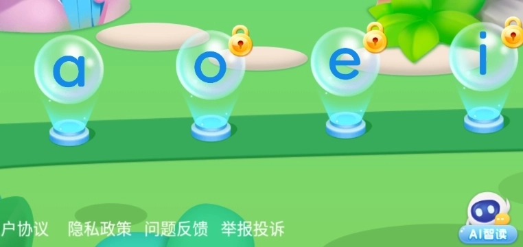 3、快乐学习氛围:通过打造可爱的学习场景并融入趣味游戏,帮助孩子在轻松愉悦的氛围里练习拼音的发音与拼读。